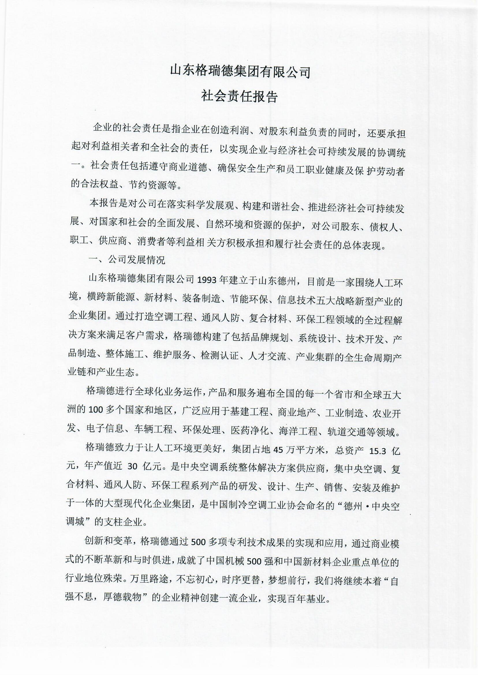 格瑞德1993年建立于山东德州,目前是一家围绕人工环境,横跨新能源、新材料、装备制造、节能环保、信息技术五大战略新型产业的企业集团。格瑞德进行全球化业务运作,产品和服务遍布全国的每一个省市和全球五大洲的100多个国家和地区,广泛应用于基建工程、商业地产、工业制造、农业开发、电子信息、车辆工程、环保处理、医药净化、海洋工程、轨道交通等领域。格瑞德从业人员过万人,在山东、贵州、四川、新疆、内蒙等地建有生产基地,在上海、北京、济南、兰州以及美国洛杉矶建有研发中心。