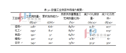 表3‑1 欧盟工业热泵市场潜力概要