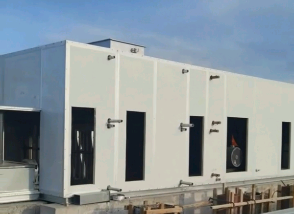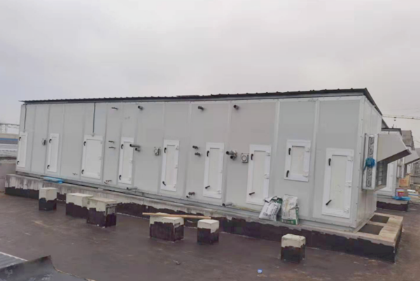 该项目为23台大型组合式空调机组设备采购安装,机组最大风量可达120000m3/h,最长机组达12余米,机组采用散件发货、现场安装的方式。