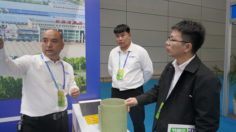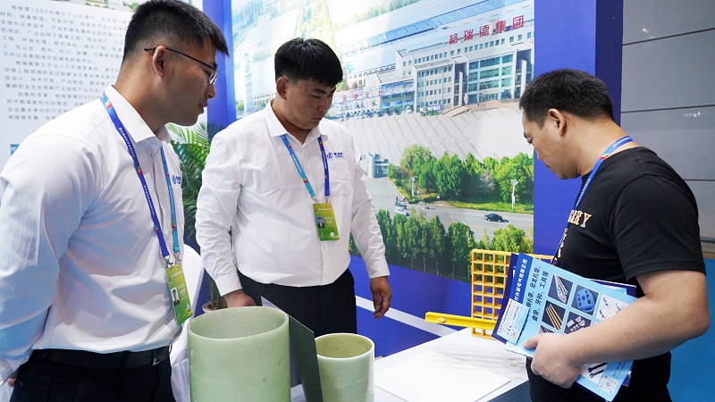 会上,玻璃钢管道、玻璃钢拉挤格栅受到了现场参展观众的一致好评,格瑞德玻璃钢管道具备重量轻、刚度高、成本低等优势,每根生产长度可达12米,管路接头少,使用寿命可达50年以上、无毒无味,可直接输送饮用水。可充分适用于船舶、市政排水、消防、水利工程、石油化工、电力等行业输调水、循环水项目。