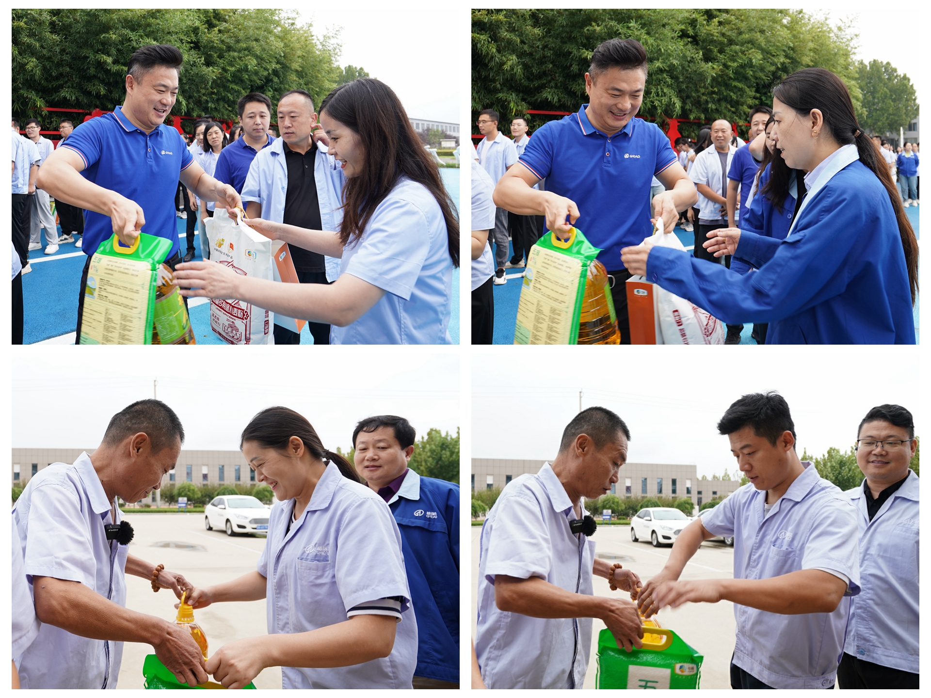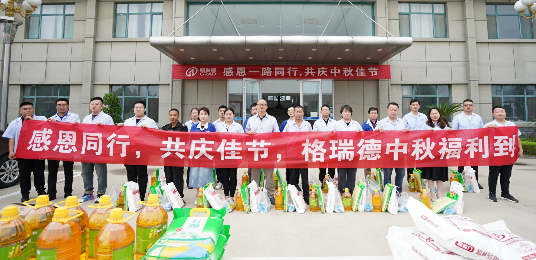 又是一年中秋月,恰逢人间好时节。在2024年中秋佳节来临之际,为感谢格瑞德职工的辛勤付出,在集团党总支的坚强领导下,在格瑞德董事会领导的支持下,格瑞德工会于9月13日-14日,为全体职工发放中秋节暖心福利,并举行了发放仪式,集团公司总经理王志军代表集团领导向全体职工们辛勤付出表示感谢,并送去节日问候和祝福,各分公司总经理慰问基层一线的工人,并送上祝福和福利物资,员工们纷纷露出了幸福满足的笑容,厂区充满了中秋节日的欢乐气氛。