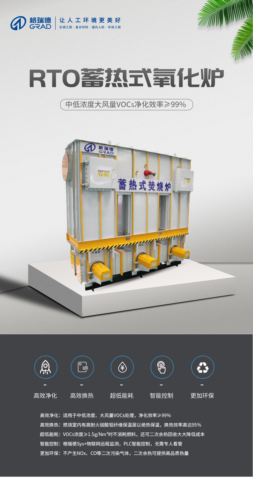 格瑞德集团致力于挥发性有机废气治理、固体废弃物安全处理处置、高浓度废水等净化处理工程,提供方案论证、工程设计、施工管理、安全运营、维护保养、清洁生产、环境建设等综合环保解决方案。
