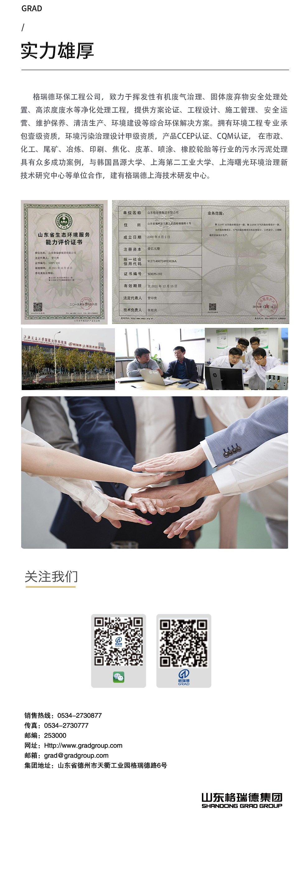 格瑞德1993年建立于山东德州,目前是一家围绕人工环境,横跨新能源、新材料、装备制造、节能环保、信息技术五大战略新型产业的企业集团。格瑞德进行全球化业务运作,产品和服务遍布全国的每一个省市和全球五大洲的100多个国家和地区,广泛应用于基建工程、商业地产、工业制造、农业开发、电子信息、车辆工程、环保处理、医药净化、海洋工程、轨道交通等领域。格瑞德从业人员过万人,在山东、贵州、四川、新疆、内蒙等地建有生产基地,在上海、北京、济南、兰州以及美国洛杉矶建有研发中心。