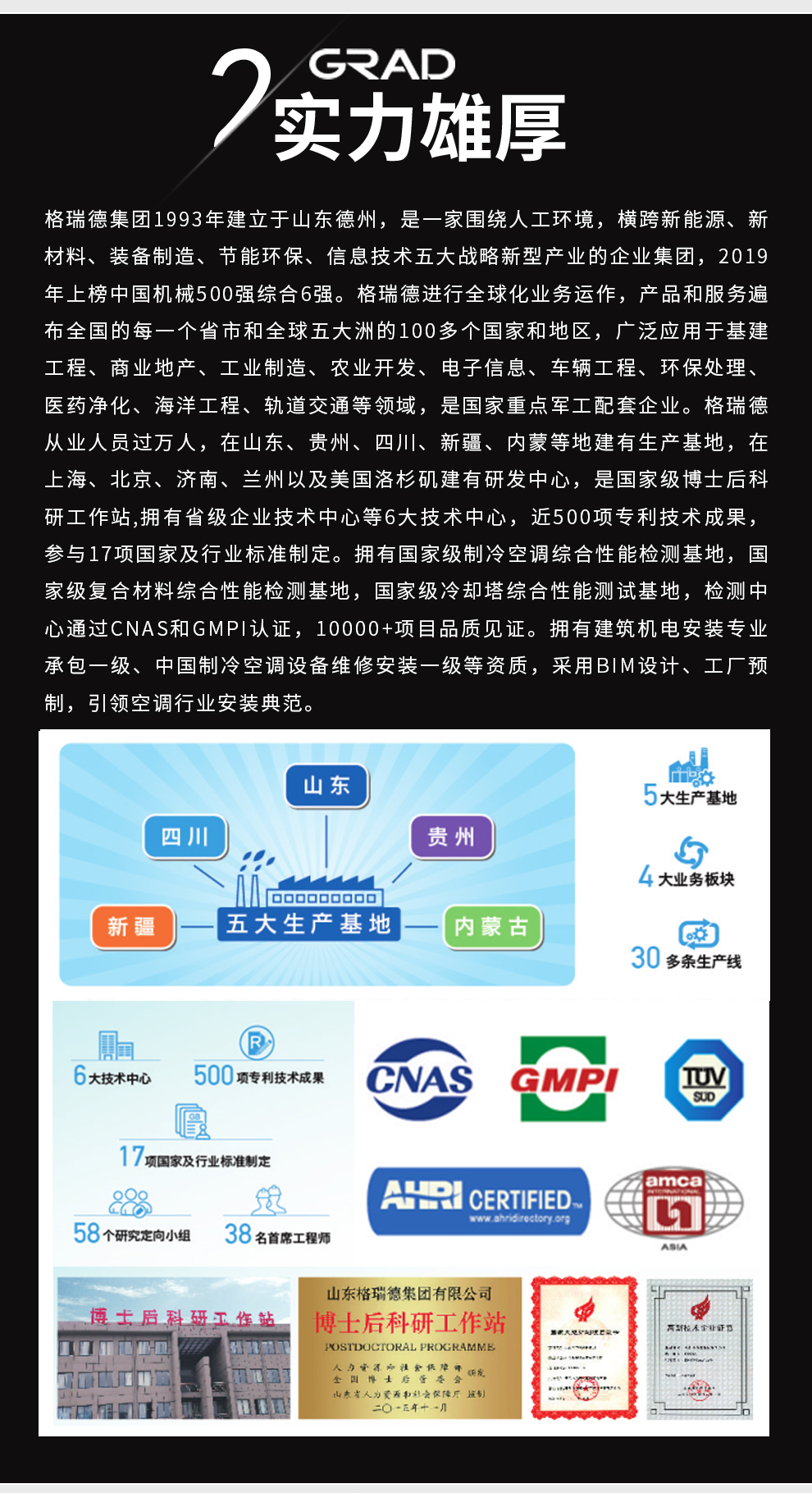 格瑞德1993年建立于山东德州,目前是一家围绕人工环境,横跨新能源、新材料、装备制造、节能环保、信息技术五大战略新型产业的企业集团。格瑞德进行全球化业务运作,产品和服务遍布全国的每一个省市和全球五大洲的100多个国家和地区,广泛应用于基建工程、商业地产、工业制造、农业开发、电子信息、车辆工程、环保处理、医药净化、海洋工程、轨道交通等领域。格瑞德从业人员过万人,在山东、贵州、四川、新疆、内蒙等地建有生产基地,在上海、北京、济南、兰州以及美国洛杉矶建有研发中心。